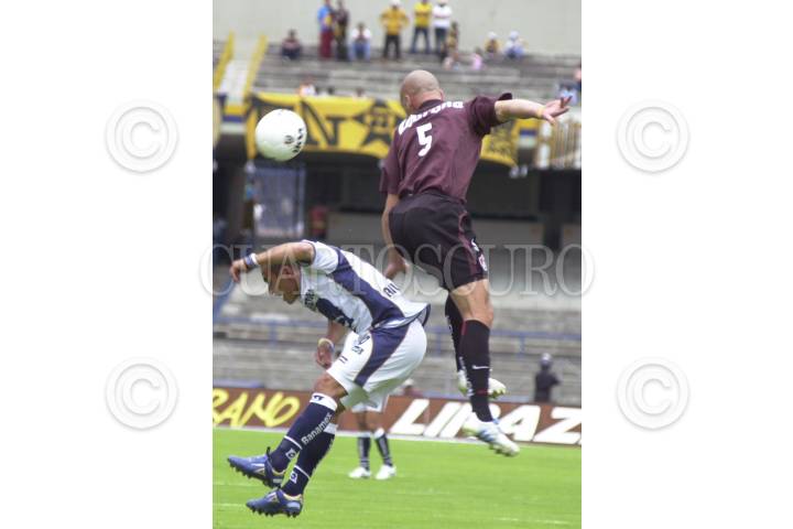 MEXICO, D.F. 06MARZO2005.- Guillermo Rodríguez (Atlas), disputó un balón con Ailton Da Silva (Pumas) donde los pumas de la UNAM vencieron 3 goles a 2 a Atlas en el partido de la jornada 8 del torneo de clausura 2005 realizado en el estadio de Ciudad Universitaria. FOTO: Iván Stephens/CUARTOSCURO.COM