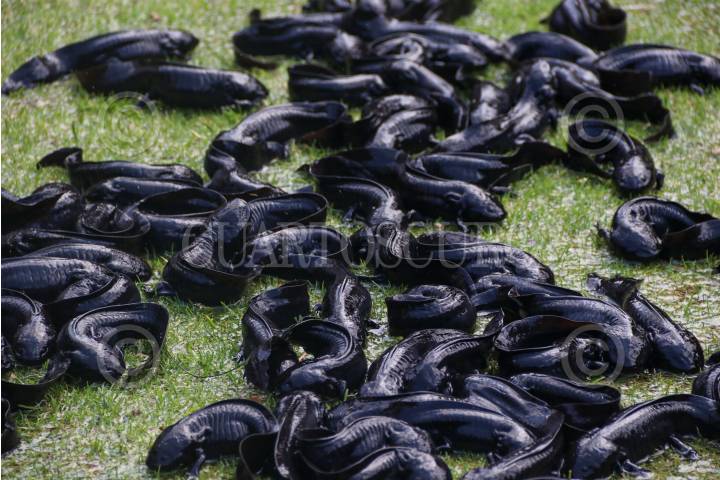 TOLUCA, ESTADO DE MÉXICO, 30ENERO2025.- El próximo 1 de febrero se celebra el Día Nacional del Ajolote, que en náhuatl significa atl, agua y xólotl, monstruo, monstruo de agua, una especie de anfibio que se ha hecho muy popular por estar en los billetes de 50 pesos mexicanos; en Toluca Carlos Andrés Rodríguez maneja la PIMVS Axolcatzin (Predio o instalación que maneja vida silvestre de manera confinada o en cautiverio avalado por SEMARNAT) la cual nace por un amor profundo por los ajolotes que desarrolló desde muy pequeño, que lo llevó a estudiar Biología en la UAEMÉX, se hizo de su primer pareja mientras estudiaba y poco a poco fue aprendiendo de ellos, sobre todo de su reproducción, durante la pandemia profundizo en todo esto y en el 2020 tuvo su primer puesta de huevos. El ajolote a nivel científico pertenece al género que se llama Ambystoma y existen aproximadamente 32 especies, que se distribuyen de la parte sur de Canadá hasta la parte central de México, en donde tenemos 18 especies endémicas. En el criadero se dedican a reproducir, conservar y dar pláticas sobre la importancia de esta especie sobre todo de tres de ellas, Ambystoma andersoni o ajolote jaguar de la laguna de Zacapu en Michoacán, Ambystoma mexicanum o ajolote mexicano del Lago de Xochimilco y el Ambystoma dumerilli del Lago de Pátzcuaro, a través de estos 6 años han logrado reproducir y conservar más de 3500 ajolotes y esa cifra va creciendo poco a poco. El ajolote se encuentra en peligro de extinción debido a la venta y caza ilegal para consumo propio, reducción de su hábitat, contaminación en la zona en donde se encuentran y también la introducción de especies invasoras como la trucha, carpa y tilapia reducen la población de ajolotes, y actualmente los anfibios enfrentan un problema muy grande por el cambio climático. Los ajolotes son hábitos carnívoros se alimenta principalmente de lombrices pequeñas y muchos tipos de insectos acuáticos, peces pequeños, en vida libre viven entre 7 y 8 años y en cautiverio llegan a vivir entre 12 o 13 años y se puede alargar su vida, se puede tener un ajolote como mascota en casa pero se recomienda que sean adquiridos en lugares avalados por SEMARNAT y no se fomente la venta ilegal que es un grave problema para su conservación. FOTO: CRISANTA ESPINOSA AGUILAR /CUARTOSCURO.COM