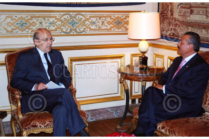 PARÍS, FRANCIA, 24MAYO2011.- El presidente de la mesa directiva del Senado de la República Senador Manlio Fabio Beltrones, sostuvó una reunión de trabajo con el Ministro de Asuntos Exteriores y Europeos del Gobierno de Francia, Alain Juppé, en la cancillería francesa. FOTO: CUARTOSCURO.COM