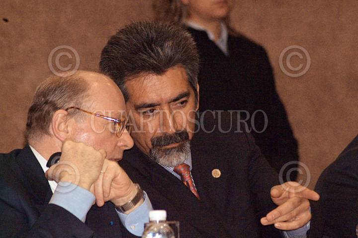 MÉXICO, D.F. 23ENERO2006.- El director de la oficina Europea de patentes Alain Pompidou y el director del Instituto Politécnico Nacional (IPN) Enrique Villa Rivera, durante la conferencia magistral "La importancia de las patentes para la investigación y el desarrollo económico". FOTO: IPN/CUARTOSCURO.COM