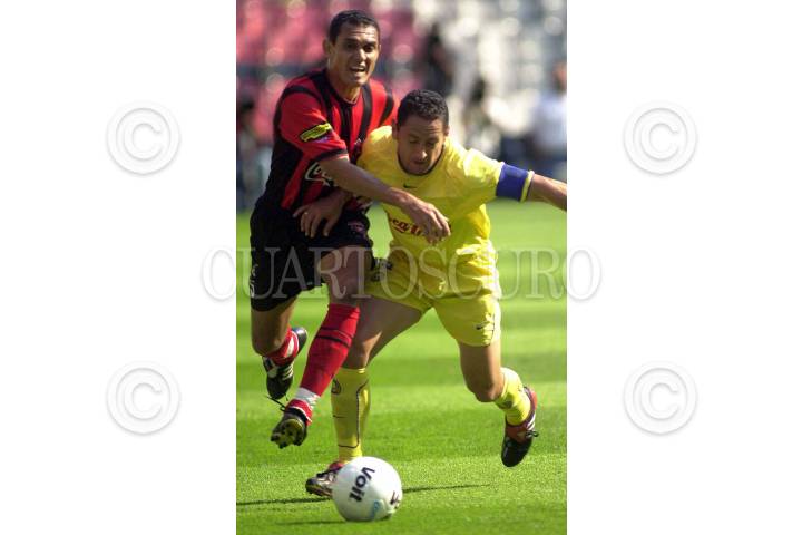 Con dos goles del uruguayo Marcelo Lipatín y con Cuauhtémoc Blanco muy enchufado, el América de México apabulló este miércoles 4-0 al Alajuelense de Costa Rica, en su partido de ida de los cuartos de final de la Copa de Campeones de la Concacaf. FOTO: Pedro Mera/CUARTOSCURO.COM