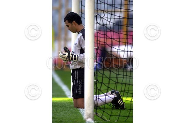 Con dos goles del uruguayo Marcelo Lipatín y con Cuauhtémoc Blanco muy enchufado, el América de México apabulló este miércoles 4-0 al Alajuelense de Costa Rica, en su partido de ida de los cuartos de final de la Copa de Campeones de la Concacaf. En la imágen, Alvaro Mesen, arquero del Alajuelense reza bajo su portería. FOTO: Pedro Mera/CUARTOSCURO.COM