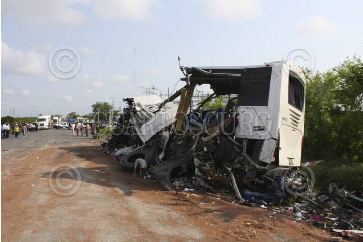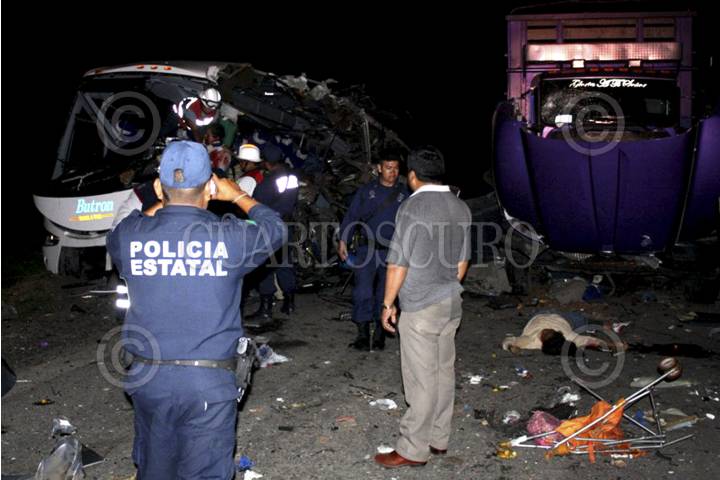 ÁLAMO, VERACRUZ, 20ABRIL2012.- Por la madrugada un autobús de pasajeros fue impactado por la caja de un tráiler sobre la carretera Álamo-El Potrero, con un saldo preliminar de 43 muertos y 27 lesionados. FOTO: ESPECIAL /CUARTOSCURO.COM