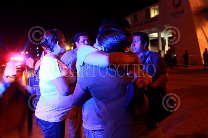 TUXPAN, VERACRUZ, 21ABRIL2012.- Familiares de los 43 fallecidos que murieron en un accidente carretero cercano a el municipio de Álamo, realizaron una velada afuera del Auditorio Municipal de Tuxpan en donde permenecen los restos, los cuales son entregados a cuentagotas. FOTO: FÉLIX MÁRQUEZ /CUARTOSCURO.COM