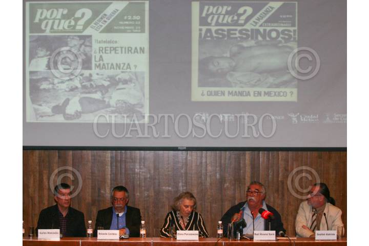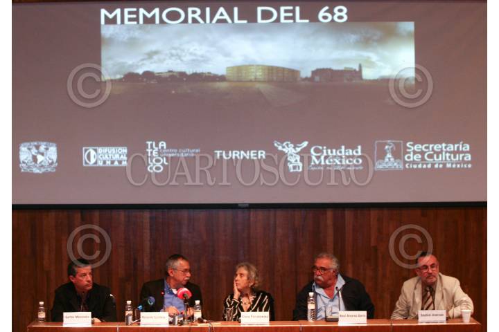 MÉXICO, D.F., 13MAYO2008.- Rolando Cordera, Elena Poniatowska, Raúl Alvarez Garin y Sealtiel Alastriste, presentaron el catalogo "Memorial del 68" en el Centro Cultural Universitario Tlatelolco. FOTO: SAUL LOPEZ/CUARTOSCURO.COM