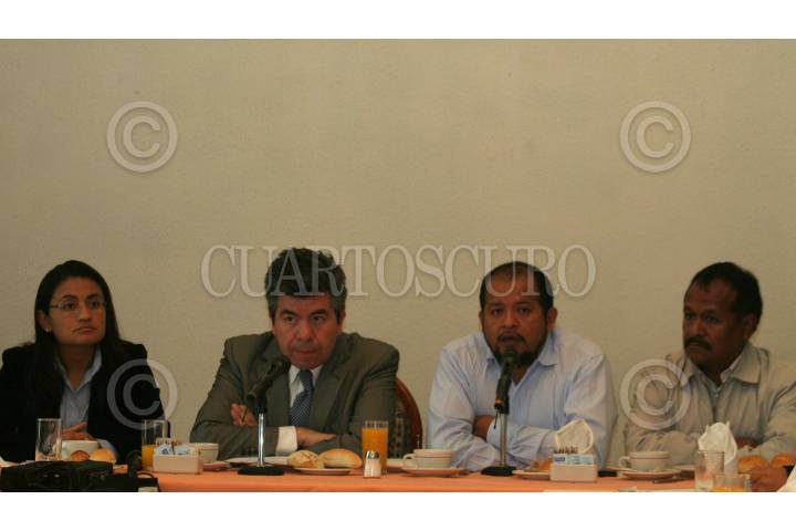 MÉXICO, D.F., 22OCTUBRE.- Germán Mendoza, integrante de la APO, los diputados del PRD, Aleida Alavéz y Joaquín de los Santos, acompañados de Roberto López de COCEI, en conferencia de presa se pronunciaron por que comparezcan responsables de la PGR, por el caso del periodista muerto en Oaxaca, Brad Will. FOTO: GUILLERMO PEREA/CUARTOSCURO.COM