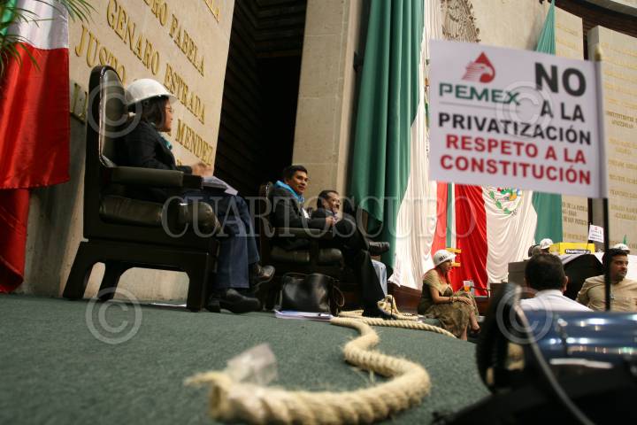 MÉXICO D.F. 10ABRIL2008.-Diputados del Frente Amplio Progresista toman la tribuna al momento de discutir un tema de migración durante la sesión en la Cámara de Diputados.En la imagen el diputado Aleida Alavez junto con otros diputados resguardan el salon de plenos sentados a la entrada lateral de la mesa directiva. FOTO: GUILLERMO PEREA /CUARTOSCURO.COM
