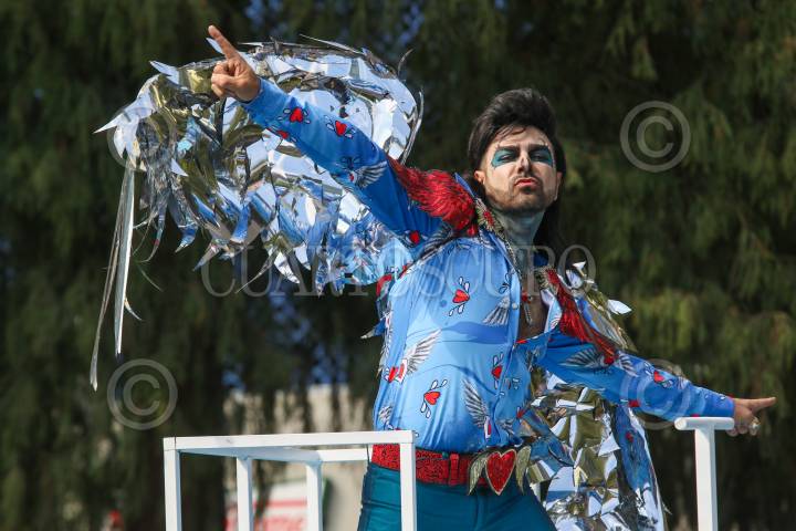 Casi un millón de espectadores se registraron en el Gran Desfile de Día de Muertos, que partió del Zócalo rumbo a Campo Marte. En la imagen Albertano, que es interpretado Ariel Miramontes, durante el recorrido.