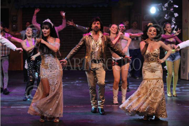 Lo actores Lisardo, Maribel Guardia, Albertano, Violeta Isfel, Germán Ortega y Laura León durante la obra musical “Lagunilla Mi Barrio”