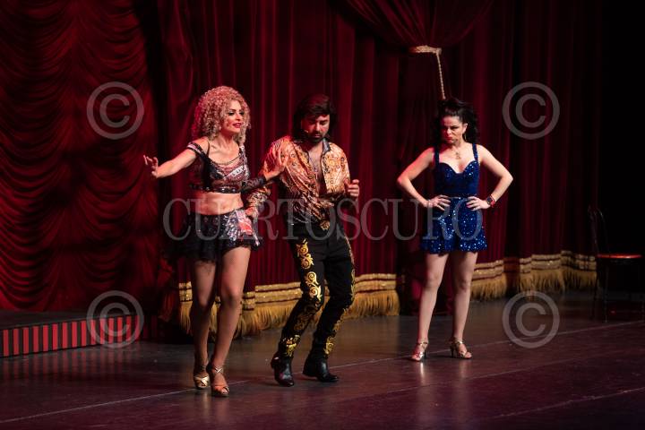 Alma Cero, Ariel Miramontes y Violeta Isfel durante su participación en la función especial de la obra de teatro "Lagunilla mi barrio" celebrando sus 100 representaciones en el Centro Cultural Teatro 2.