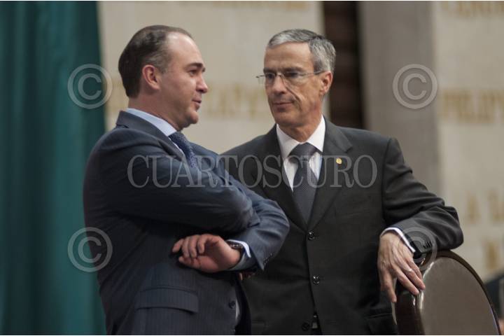 MÉXICO, D.F., 22ABRIL2014- Los diputados Alberto Villareal, coordinador de la bancada del PAN en la Cámara de Diputados; y José González Morfín, presidente de la mesa directiva de la Cámara de Diputados; durante la sesión en el Palacio Legislativo de San Lázaro. FOTO: IVÁN STEPHENS /CUARTOSCURO.COM