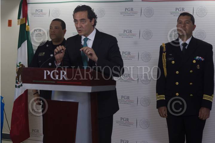 CIUDAD DE MÉXICO, 11MARZO2018.- Alberto Elias Beltrán, subprocurador jurídico y de asuntos internacionales, y Manelich Castilla, comisionadon de la Policía Federal, ofrecieron una conferencia de prensa para dar a conocer que descartaron la participación de grupos terroristas y del crimen organizado en la explosión que ocurrio en un barco turístico en Playa del Carmen el 21 de febrero del año en curso. FOTO: TERCERO DÍAZ /CUARTOSCURO.COM