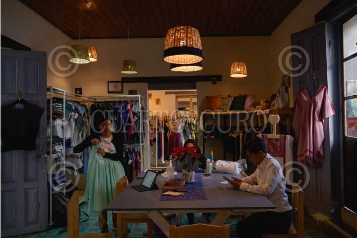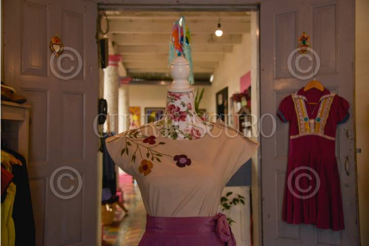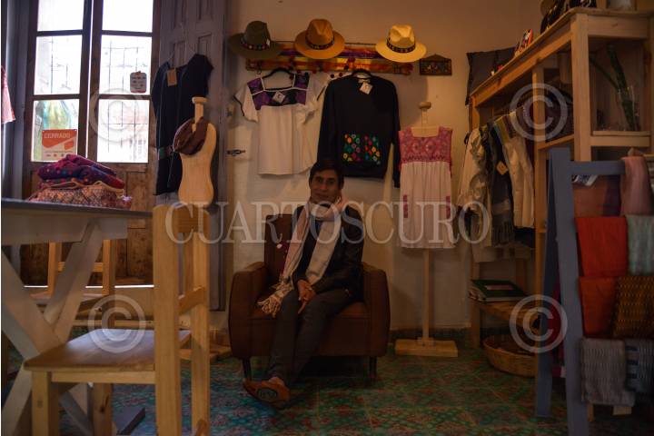 Aspectos de la tienda del diseñador chiapaneco en la ciudad de San Cristobal de las Casas.