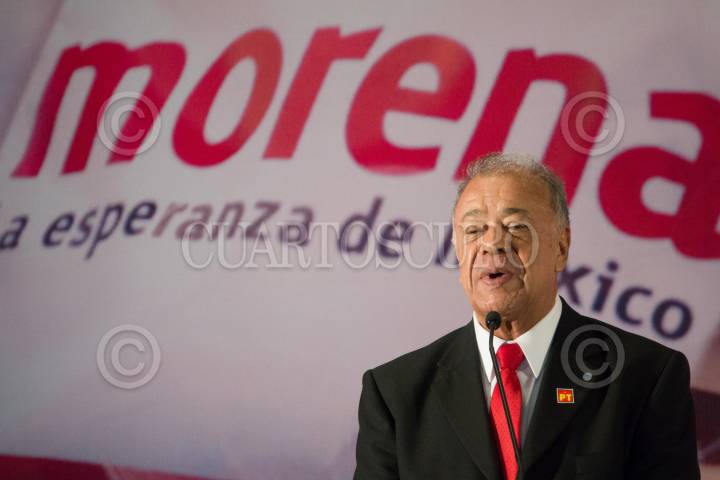 Gerardo Fernández Noroña, diputado del Partido del Trabajo, durante la reunión entre diputadas y diputados electos de Morena, PT y PVEM.