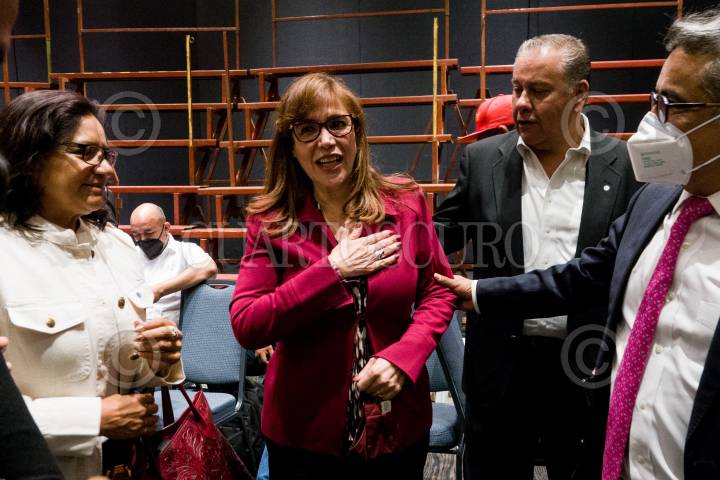 Karen Castrejón Trujillo durante la conferencia de prensa y reunión con diputadas y diputados electos de Morena PT y PVEM.