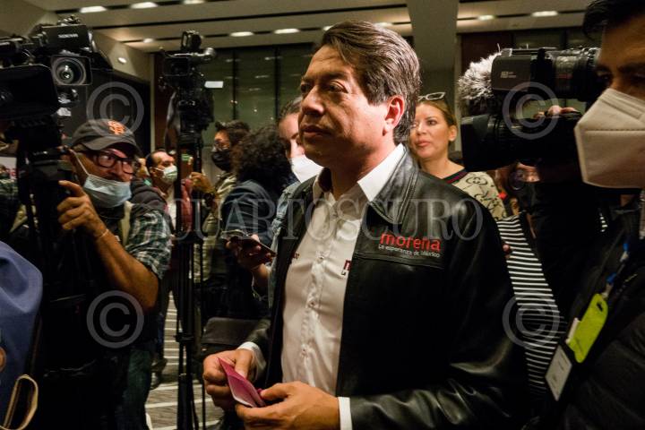 Mario Delgado durante la conferencia de prensa y reunión con diputadas y diputados electos de Morena PT y PVEM.