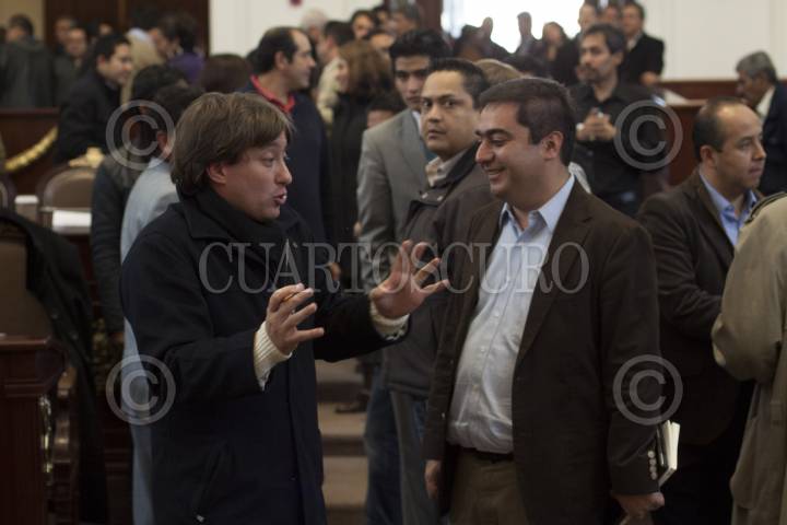 MÉXICO, D.F., 31DICIEMBRE2012.- Los diputados Alberto Cinta, PVEM, y Vidal Llerenas Morales, PRD, durante la sesión en la ALDF en la que se aprobó el Paquete Económico 2013 del DF. FOTO: MOISÉS PABLO / CUARTOSCURO.COM