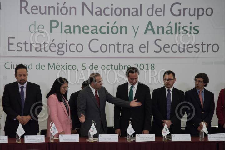CIUDAD DE MÉXICO, 05OCTUBRE2018.- Patricia Bugarin Gutiérrez, Coordinadora Nacional Antisecuestro; Alfonso Navarrete Prida, secretario de Gobernación y Alberto Elías Beltrán, subprocurador Jurídico y de Asuntos Internacionales en Suplencia del C. Procurador de la República, encabezaron la inauguración de la 4ª Reunión Nacional del Grupo de Planeación y Análisis Estratégico contra el Secuestro, llevada a cabo en el salón Revolución de la Secretaría de Gobernación. FOTO: MARIO JASSO /CUARTOSCURO.COM