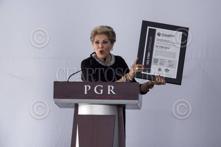 CIUDAD DE MÉXICO, 28NOVIEMBRE2018.- Adriana Campos López, visitadora general de la procuraduría, recibió la certificación de la Norma Internacional ISO 37001:2016 “Sistema de Gestión Antisoborno”. Con esta medida se busca la mejora en la perspectiva que la sociedad tiene hacia las instituciones. FOTO: GALO CAÑAS /CUARTOSCURO.COM