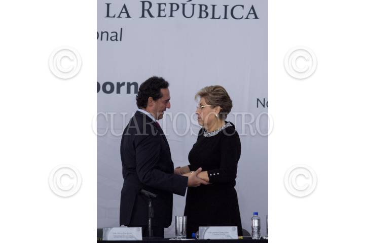 CIUDAD DE MÉXICO, 28NOVIEMBRE2018.- Patricia Bugarin Gutiérrez, coordinadora Nacional, titular de la Comisión Nacional de Seguridad, y Alberto Elías Beltrán, subprocurador Jurídico y de Asuntos Internacionales de la Procuraduría General de la República (PGR), durante la entrega de certificado de la Norma Internacional ISO 37001:2016 “Sistema de Gestión Antisoborno”. Con esta medida se busca la mejora en la perspectiva que la sociedad tiene hacia las institucione. FOTO: GALO CAÑAS /CUARTOSCURO.COM