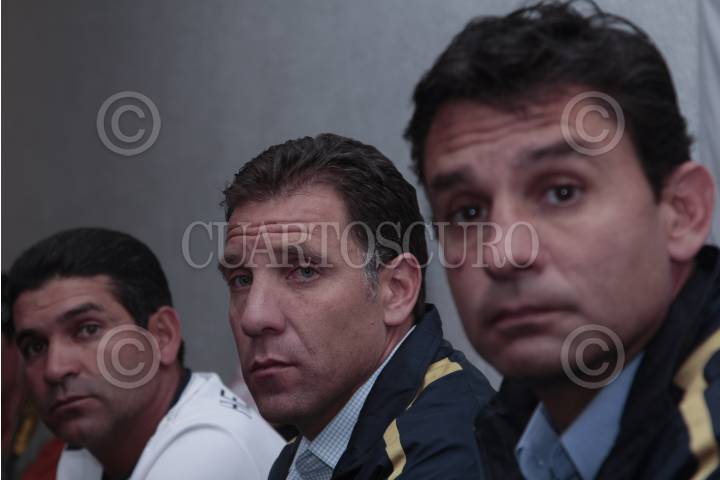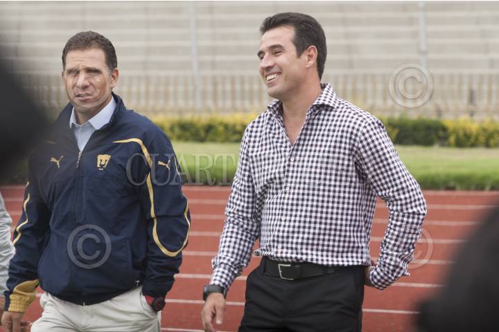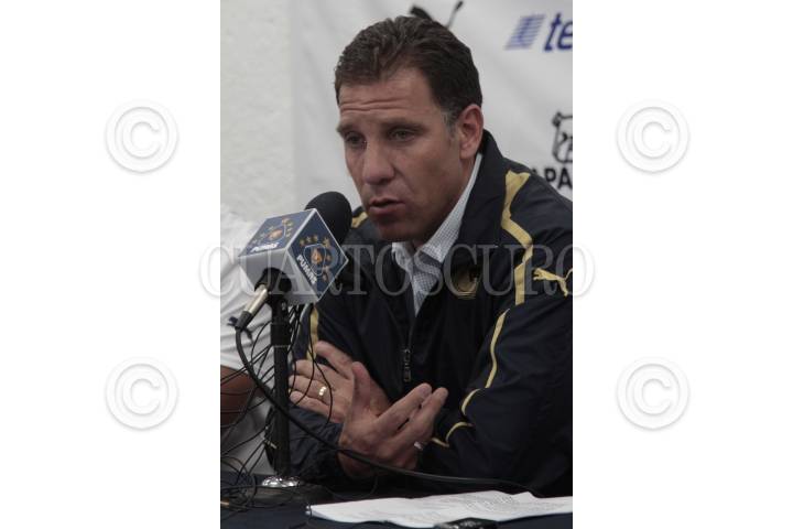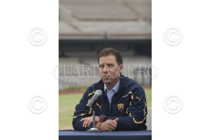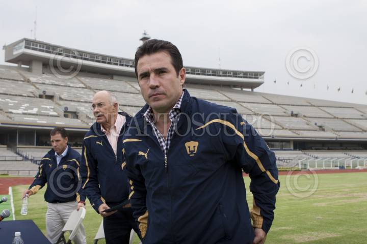 MÉXICO, D.F., 25MAYO2012.- El Director Deportivo de los PUMAS de la UNAM, Alberto García Aspe, presentó en el Estadio México 68, al nuevo director del equipo de futbol, Joaquín del Olmo la tarde de hoy. El timonel Felino anunció a sus equipo que lo acompañara y la contratación será por un año con el compromiso de que el equipo auriazul pase a la liguilla en la siguiente temporada. FOTO: FRANCISCO RODRÍGUEZ /CUARTOSCURO.COM