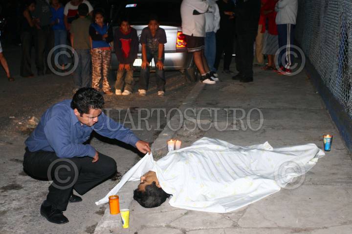 MÉXICO, D.F., 18SEPTIEMBRE2008.- En la cerrada del Angel Albino Corzo, en la colonia Gertrudis Sánchez de la Gustavo Madero, fue ejecutado de varios disparos el joven Aaron Acosta Ramos de 23 años por varios sujetos que viajaban en una camioneta Xtrail de color negra en la que se dieron a la fuga. FOTO: LUZ ACEVEDO/CUARTOSCURO.COM