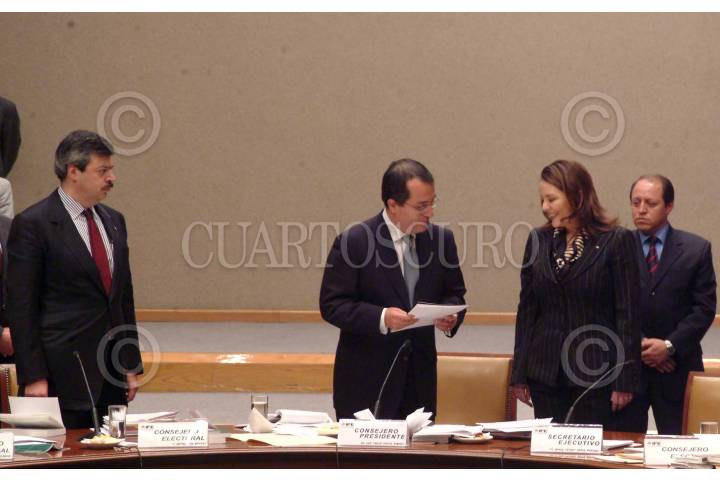 MÉXICO, D.F. 18ABRIL2007.- Los consejeros electorales Virgilio Andrade, Ma. Teresa de Jesús González, Lourdes del refugio López y Andres Albo Márquez durante la sesión extraordinaria en la sede del Instituto Federal Electoral. FOTO: PAOLA HIDALGO/CUARTOSCURO.COM