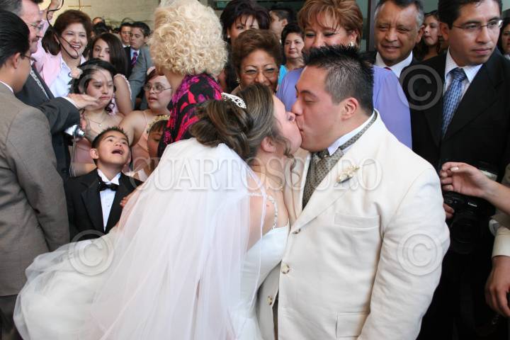 MÉXICO D.F. 18FEBRERO2006.- Maribel Sánchez y Ernesto Hernández, se besaron despuès de contraer matrimonio en la Iglesia de la Esperanza de Maria Alborada. FOTO: Diego Gallegos/CUARTOSCURO.COM