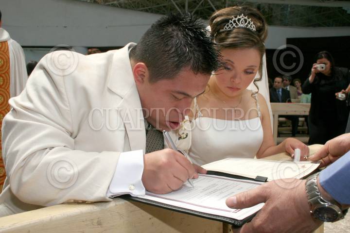 MÉXICO D.F. 18FEBRERO2006.- Maribel Sánchez y Ernesto Hernández, firmaron el acta de matrimonio, que los une como pareja; es la primera pareja con sindrome de down que contrae nupcias en la ciudad de México. FOTO: Diego Gallegos/CUARTOSCURO.COM