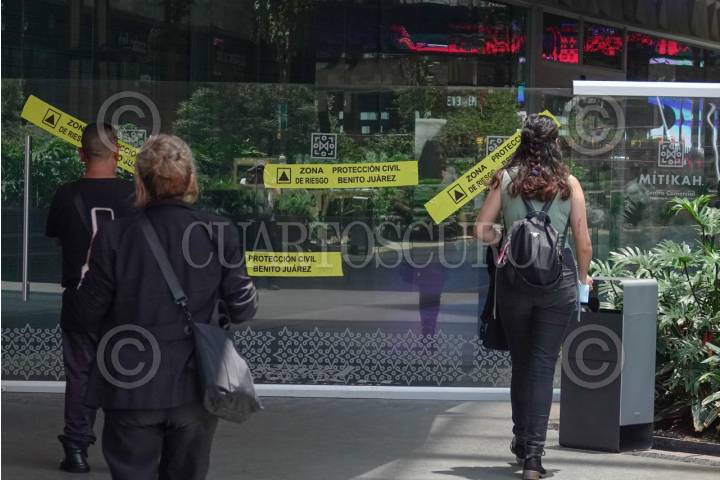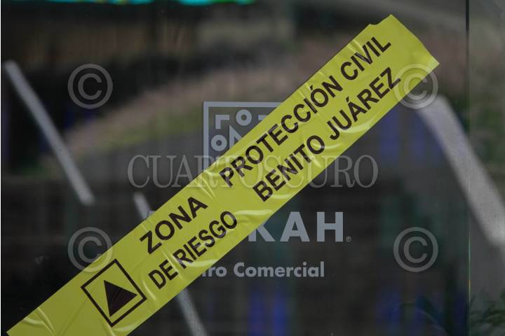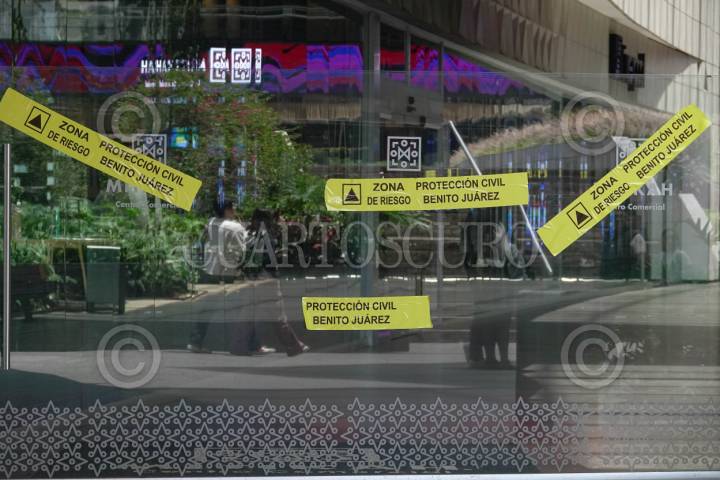 CIUDAD DE MÉXICO 12AGOSTO2025.- Aspectos de los sellos colocados por Protección Civil de la alcaldía Benito Juárez, esto luego de que el pasado martes se desplomara un elevador dentro del centro comercial, dejando como resultados dos personas lesionadas. FOTO:ROGELIO MORALES /CUARTOSCURO.COM