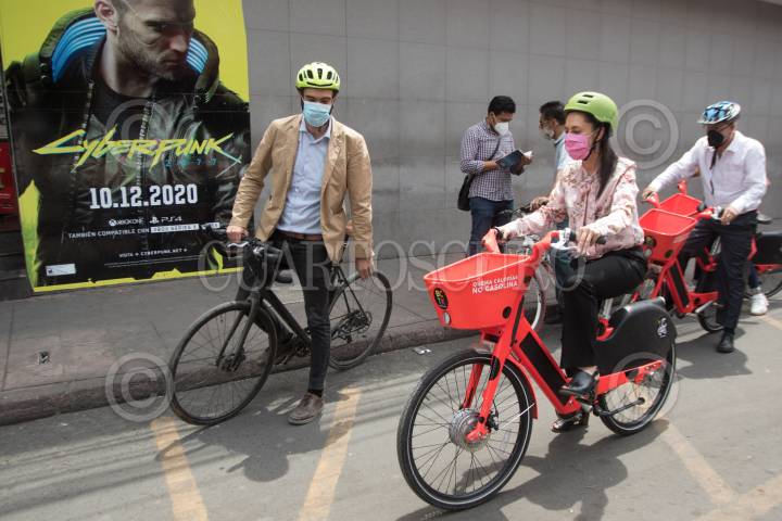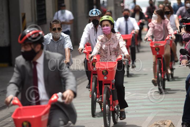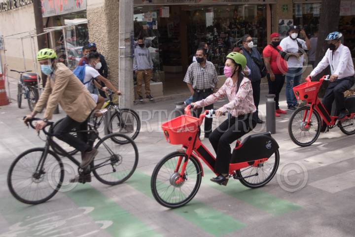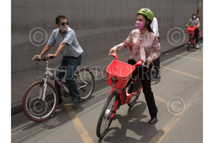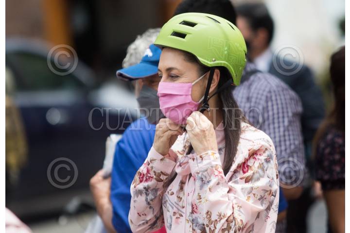 Claudia Sheinbaum Pardo, jafa del Gobierno de la Ciudad de México, en bicicleta en la alcaldía de Azcapotzalco