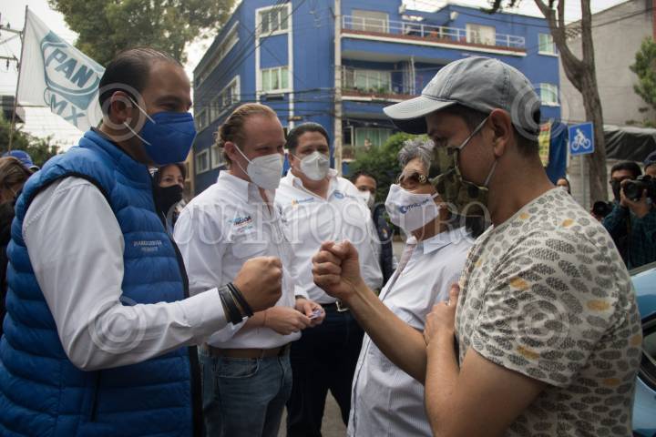 Vecinos de la alcaldía de Benito Juárez fueron visitados por el dirigente del PAN Marko Cortés y el alcalde Santiago Taboada