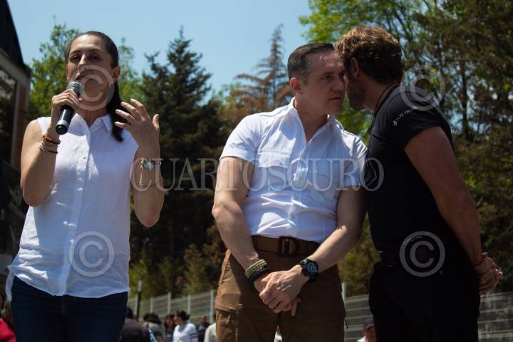 Claudia Sheinbaum Pardo, jefa de Gobierno, Adrián Rubalcava, alcalde de Cuajimalpa y el actor Gabriel Zoto, durante la inauguración Deportivo Morelos