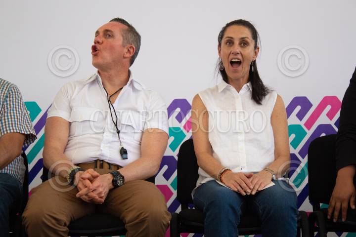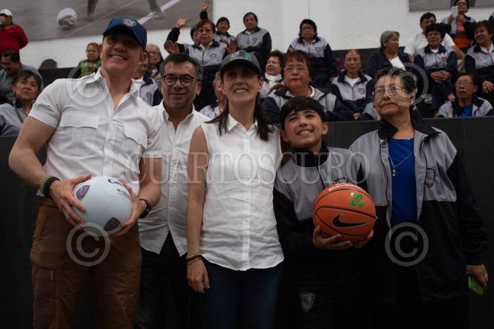 Claudia Sheinbaum Pardo, jefa de Gobierno, Adrián Rubalcava, alcalde de Cuajimalpa durante la inauguración Deportivo Morelos