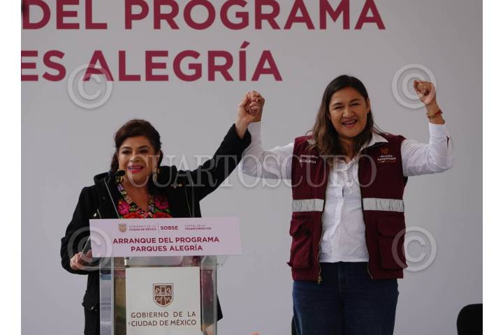 CIUDAD DE MÉXICO, 26OCTUBRE2024.- Clara Brugada, Jefa de Gobierno en compañía de Nancy Marlene Núñez Reséndiz, Alcaldesa de Azcapotzalco, inauguraron el inicio del programa Parque Alegria, en Parque Tezozómoc, en Azcapotzalco. FOTO: MAGDALENA MONTIEL /CUARTOSCURO