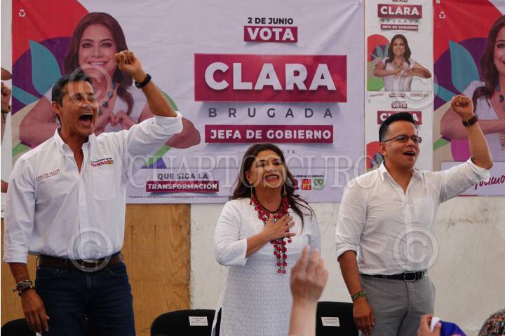CIUDAD DE MÉXICO, 05MARZO2024.- Clara Brugada, candidata a la jefatura de gobierno, por la alianza Sigamos Haciendo Historia, Carlos Hulloa y Carlos Hernández, candidatos por diputación, durante su vista a la alcaldía Tlalpan, como parte de su campaña política. FOTOS: ROGELIO MORALES /CUARTOSCURO.COM