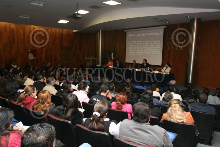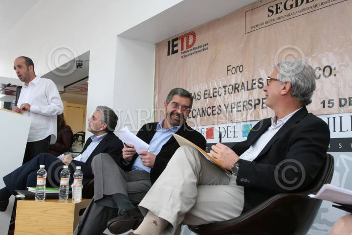 MÉXICO D.F., 15MARZO2010.- Alberto Aziz Nassif, Juan Ramón de la Fuente, Javier Solorzano Zinzer, Denise Dresser y Pedro Salazar Ugarte, durante el foro Alianzas Electorales en México: Alcances y Perspectivas, esto en el museo del Estanquillo. FOTO: GUILLERMO PEREA/CUARTOSCURO.COM