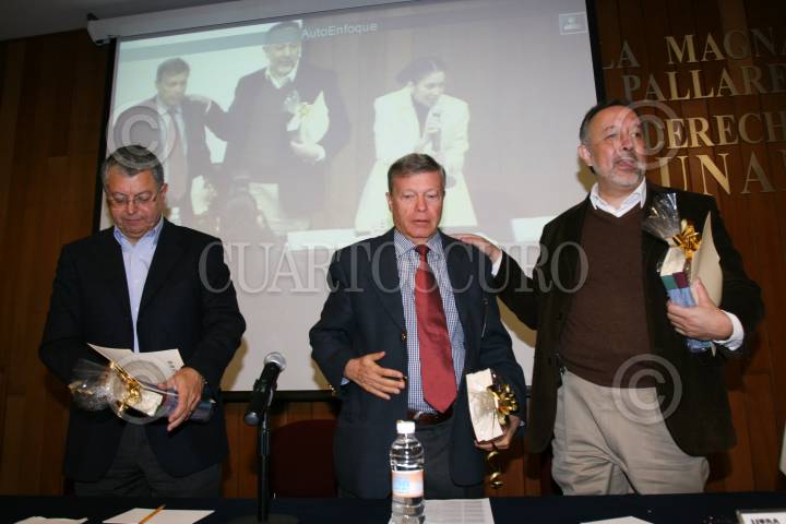 MÉXICO, D.F., 27SEPTIEMBRE2008.- Manuel Camacho Solis, Eduardo Luis Feher y Alberto Aguilar, participaron en la conferencia "Alcances y Perspectivas de la Reforma del Estado" que se realizó en la Facultad de Derecho. FOTO: IVÁN MENDEZ/CUARTOSCURO.COM