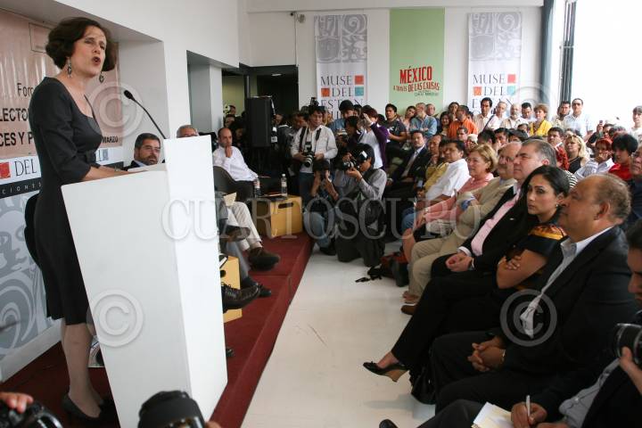 MÉXICO D.F., 15MARZO2010.- Gustavo Madero, Senador del PAN y Denise Dresser, durante el foro Alianzas Electorales en México: Alcances y Perspectivas, esto en el museo del Estanquillo. FOTO: GUILLERMO PEREA/CUARTOSCURO.COM