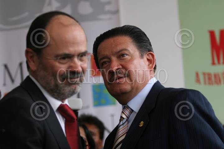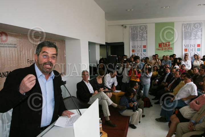 MÉXICO D.F., 15MARZO2010.- Juan Ramón de la Fuente y Carlos Navarrete, Senador del PRD, durante el foro Alianzas Electorales en México: Alcances y Perspectivas, esto en el museo del Estanquillo. FOTO: GUILLERMO PEREA/CUARTOSCURO.COM