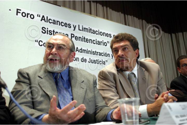 México, D.F., 26FEBRERO2004.- Bernardo Batíz, procurador de justicia del DF y Alfredo Hernández Raigosa, diputado local, participaron en el Foro ¨Alcances y Limitaciones del Sistema Penitenciario¨, que organizó la ALDF. FOTO: Moisés Pablo/CUARTOSCURO.COM