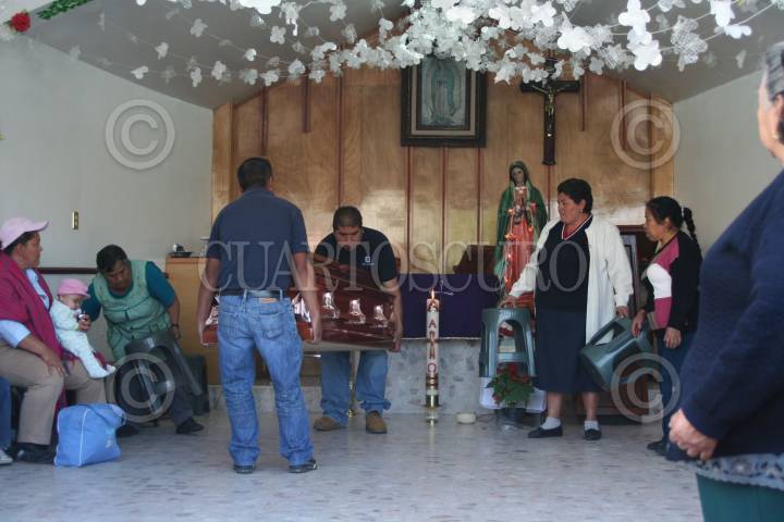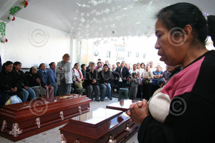 MÉXICO D.F., 23ENERO2009.- Vecinos de la colonia palmitas dieron el ultimo adiós en una misa de cuerpo presente a las victimas del derrumbe de ayer MarÌa Alcaraz de 72 años y su hijo Enrique Pineda Alcaraz de 40, la ceremonia religiosa se realizó en una capilla de dicha demarcación FOTO: IVAN MENDEZ/CUARTOSCURO.COM