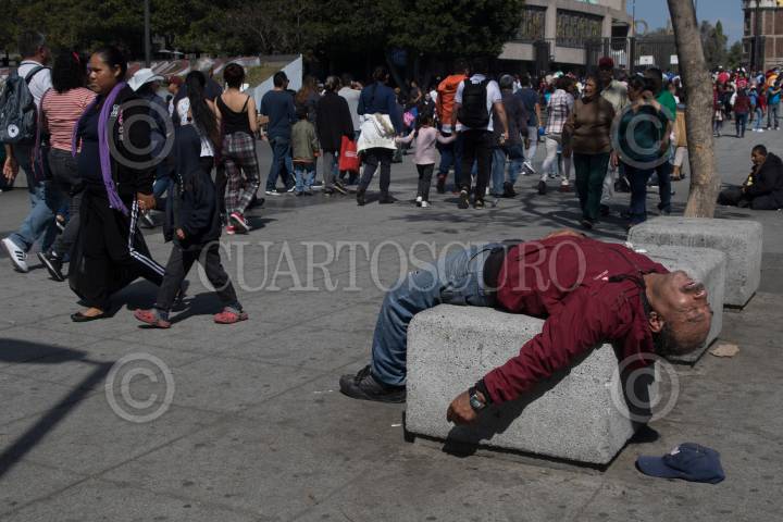 CIUDAD DE MÉXICO, 30DICIEMBRE2018.- Un hombre duerme la "cruda" en las bancas en el acceso principal de la Basílica de Guadalupe. FOTO: MOISÉS PABLO /CUARTOSCURO.COM