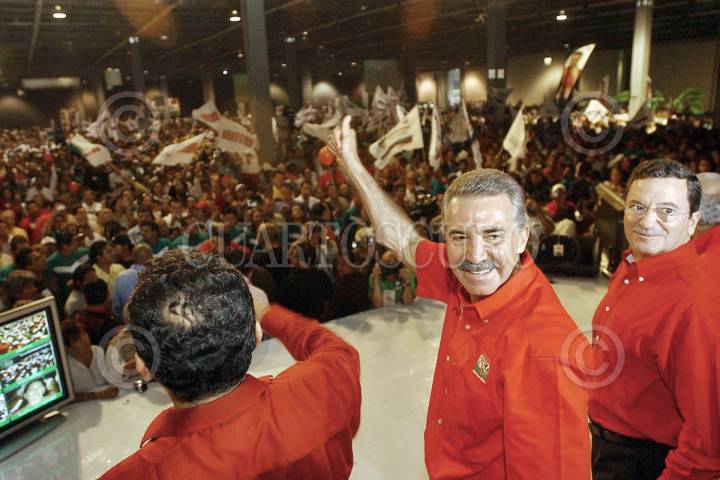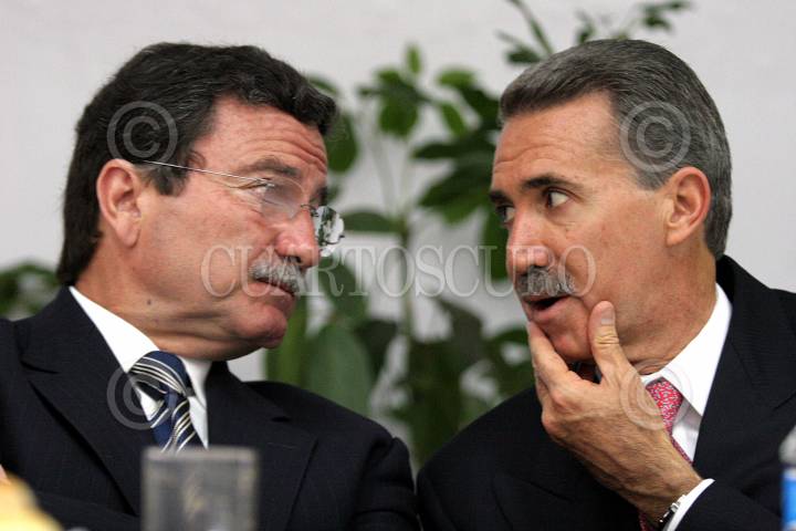 MÉXICO D.F. 15MAYO2006.- Mariano Palacios Alcozer, dirigente del PRI y Roberto Madrazo, candidato de la Alianza Por México, PRI-PVEM, durante el foro Educación, Cultura y Deporte en el CEN del PRI. FOTO: Guillermo Perea/ CUARTOSCURO.COM