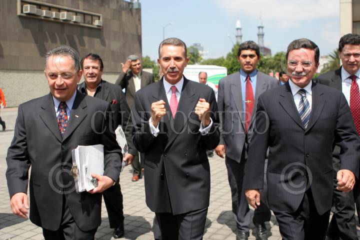 MÉXICO D.F. 15MAYO2006.- Javier Oliva, secretario de Roberto Madrazo, candidato de la Alianza Por México, PRI-PVEM y Mariano Palacios Alcozer en el CEN del PRI. FOTO: Guillermo Perea/ CUARTOSCURO.COM