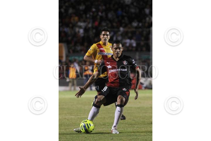 ZAPOPAN, JALISCO. 17ENERO2015.- En la imagen el jugador de Atlas Aldo Leao recibe el balón, esto en partido correspondiente a la Jornada 2 del Torneo Clausura 2015 de la Liga MX y en donde hasta el momento el marcador es de 1-0 a favor del equipo visitante.FOTO: FERNANDO CARRANZA GARCIA / CUARTOSCURO.COM