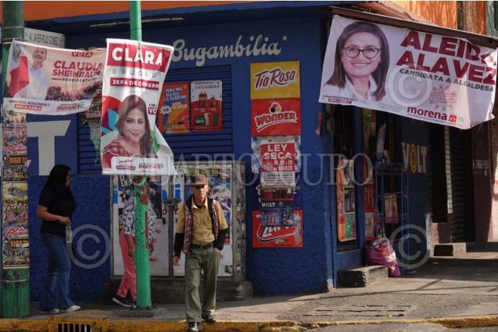 CIUDAD DE MÉXICO, 01ABRIL2024.- Lonetas del rostro de Claudia Sheinbaum, candidata a la presidencia; Clara Brugada, candidata a la Jefatura de Gobierno, y Alaida Alavez, candidata a la alcaldesa de Iztapalapa se encuentran en Avenida Rojo Gómez, en la alcaldía Iztapalapa. FOTO: GRACIELA LÓPEZ /CUARTOSCURO.COM