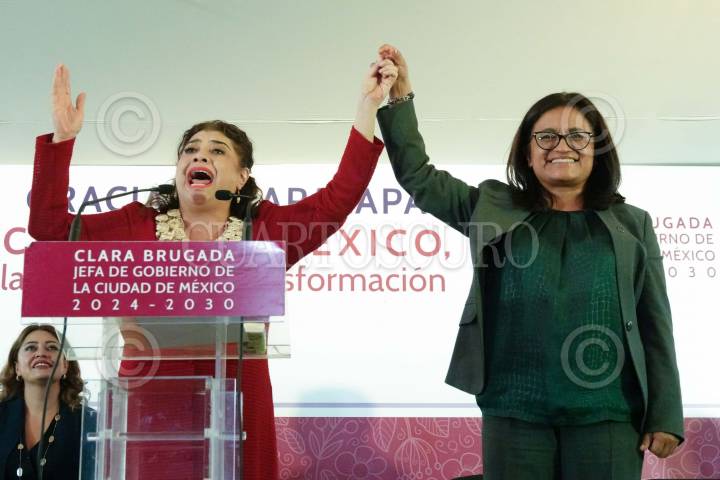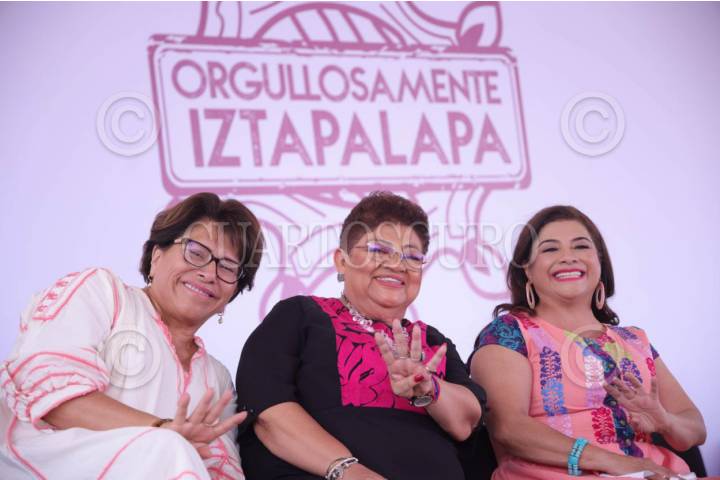 CIUDAD DE MÉXICO, 06AGOSTO2024.- Clara Brugada, Jefa de Gobierno electa, y Aleida Álavez, alcaldesa electa en Iztapalapa, durante una Asamblea realizada en la Macroplaza de la alcaldía Iztapalapa. FOTO: GRACIELA LÓPEZ /CUARTOSCURO.COM