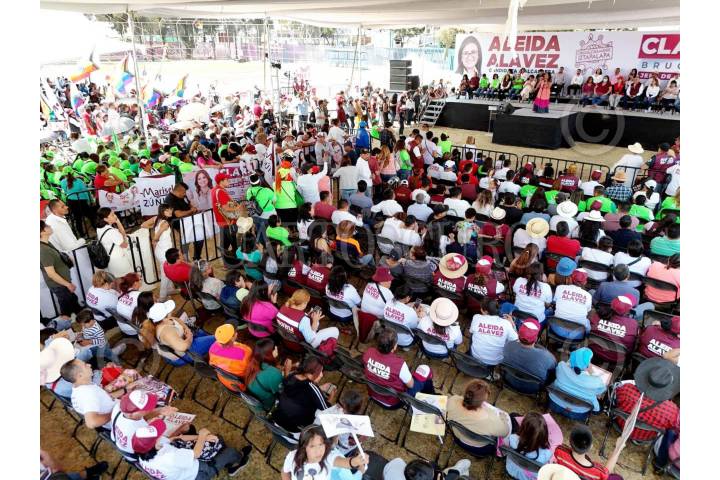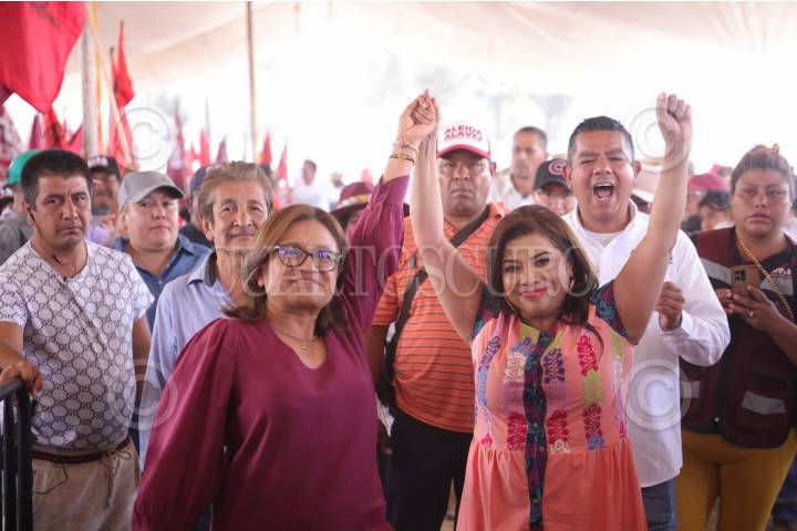 CIUDAD DE MÉXICO, 13MAYO2024.- Clara Brugada, candidata a la Jefatura de Gobierno, y Aleida Álavez, candidata a alcaldesa de Iztapalapa, durante un mitin en la Utopía Meyehualco, alcaldía Iztapalapa. FOTO: GRACIELA LÓPEZ /CUARTOSCURO.COM