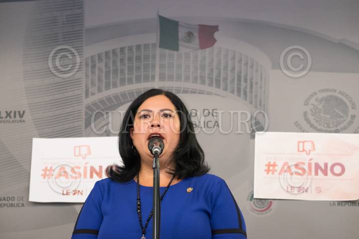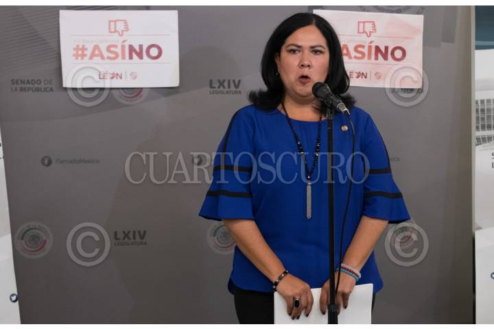 CIUDAD DE MÉXICO, 15JULIO2019.- La senadora Alejandra León Gastélum del grupo parlamentario del partido del Trabajo (PT), ofreció una conferencia de prensa en la que informó sobre la ampliación de mandato aprobada por el congreso de Baja California, la cual fue realizada en el Senado de la República. FOTO: GRACIELA LÓPEZ /CUARTOSCURO.COM